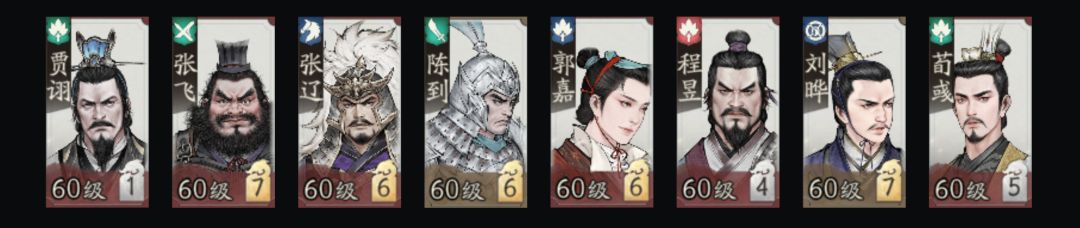 贾诩、张飞、张辽、陈到、
