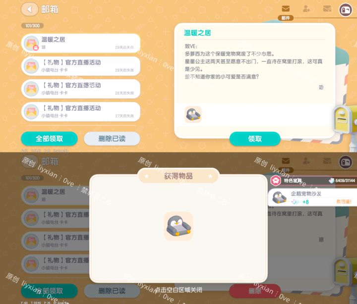完成冰雪季筹备期 第三天【琼女士】任务后,记得去邮箱内领取【企鹅宠物沙发】哦!