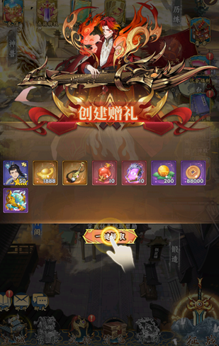 一键领取创建赠礼,快速获取武将与元宝,为前期养成打基础。