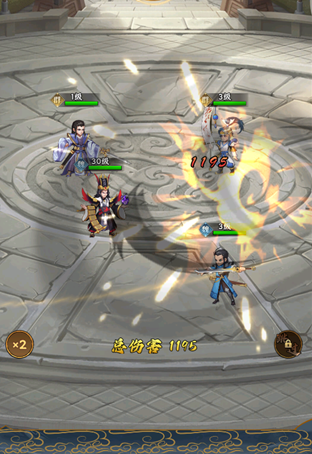 进入关卡自动战斗,武将技能自动释放,无需实时操作。