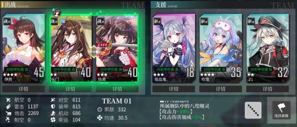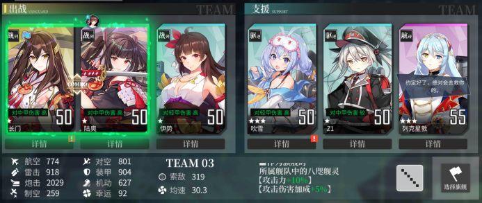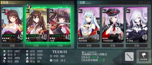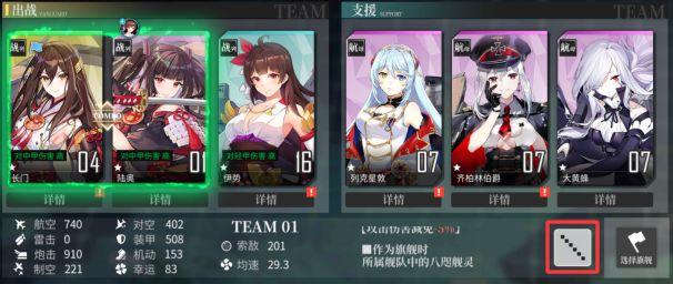 用以下阵容,记得开梯形阵,旗舰给长门。
