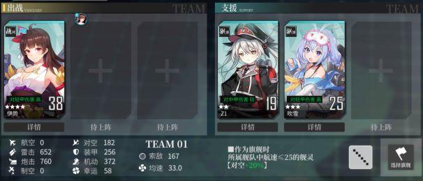 阵容参考见下图:前排放战列舰、后排放2艘驱逐舰。旗舰给前排的战列舰、索敌最好高于141。