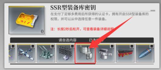 如果有大量通行证任务储存,完成至29级获取SSR密钥,选择SG对海雷达(金马桶),金马桶与胜利之刻勋章索敌一致,尽量往最高强化。