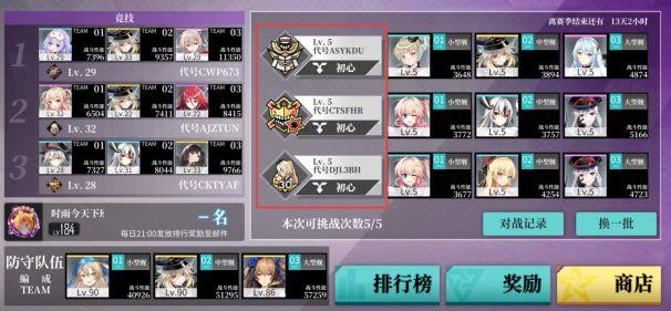 普通竞技场中,三个对手从上到下排名依次降低,我们只打最上面那个。点进、退出即可刷新,建议不断刷到第一个为人机为止,一般战斗力在一万以下、名称为“代号某某”的即为人机。不要碎钻买挑战次数。