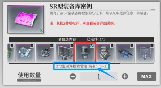 从SR自选箱选择紫色对海雷达至持有5个,先强化出3个+3的。
