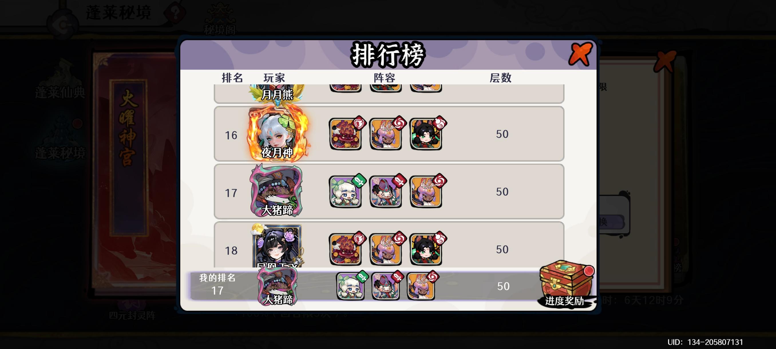 这次我也尝试用这个阵容打了火蓬莱,为了吃碧落的两次技巧带上了小师姐,站场能力差了点。