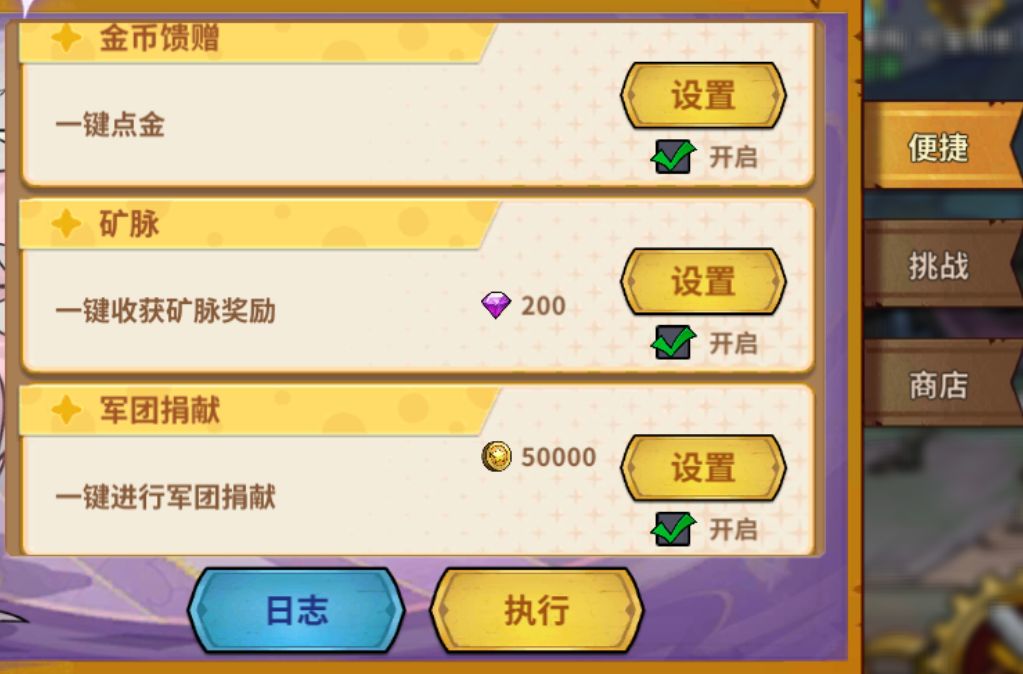 点金和军团贡献默认最低档,矿脉里魂石和纹章买满