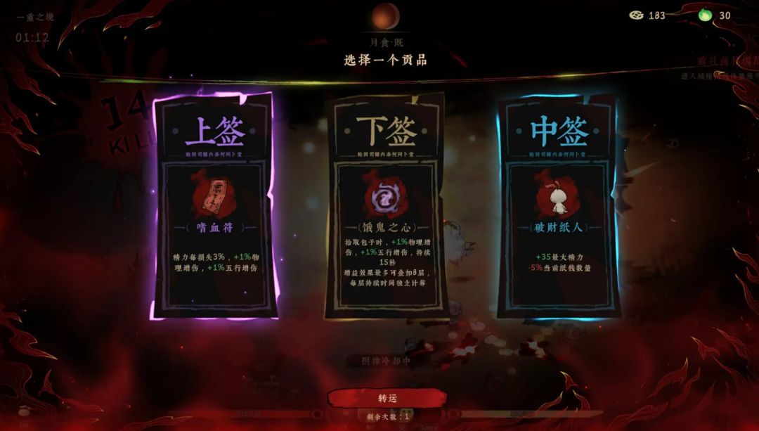 在关卡中,打小怪会获得冥币,冥币可以在商店中购买技能以及命石。角色的升级办法是完成地图中随机出现的任务,每次完成都会获得提升一级,然后进行抽签选择奖励。