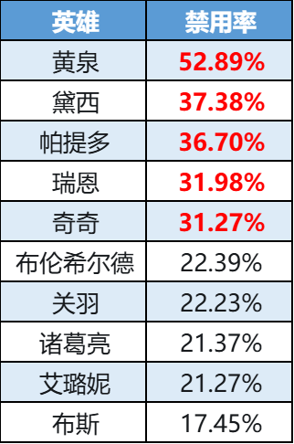 禁用率榜-黄泉威慑持续高压,布斯新晋榜单