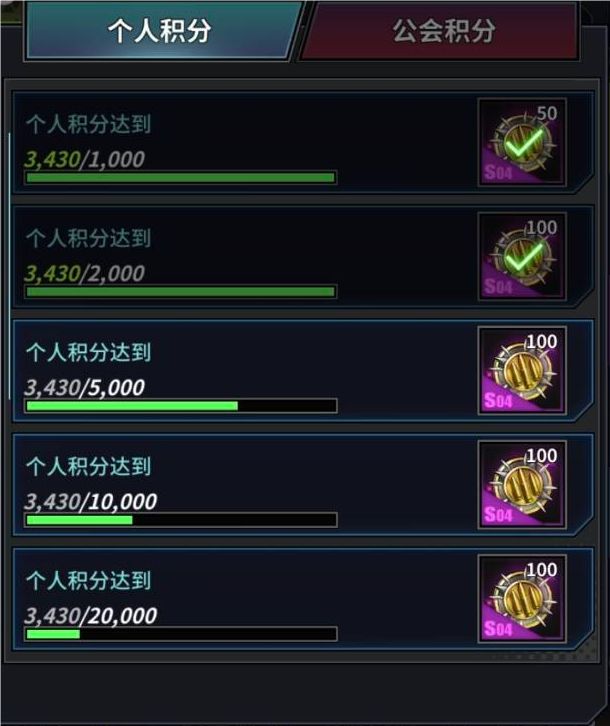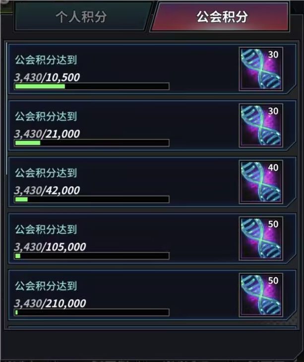 2.7.玩家所在公会累计获得积分达到一定档次所有公会玩家可以领取对应的档次奖励(活动期间每档奖励只可领取1次)