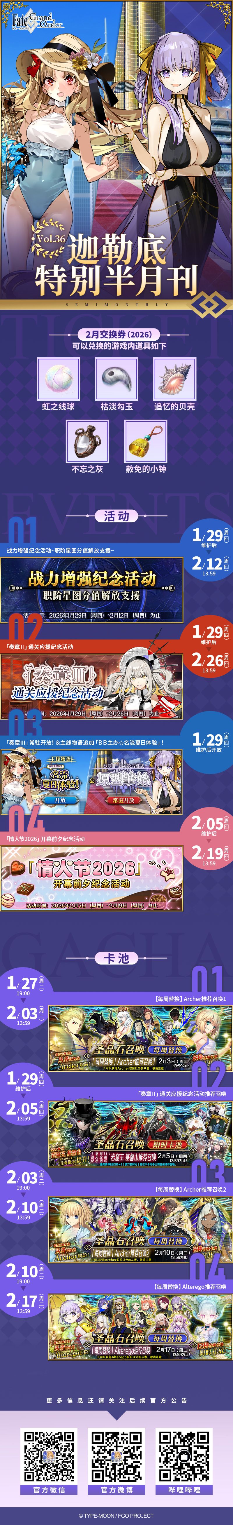 感谢各位御主对《命运-冠位指定》一直以来的关注和支持,为方便御主确认后续活动安排,《迦勒底特别半月刊》Vol.36已发布,详见下图。