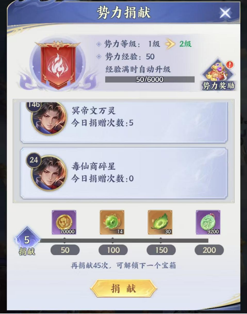 势力的壮大离不开每一位成员的耕耘。每日捐献紫晶,可为势力进度添砖加瓦。累计捐献达到指定次数,更能领取斗气丹,金币等养成资源,既有“众人拾柴火焰高”的归属感,更有实实在在的成长回馈,让每一次付出都能收获回报。