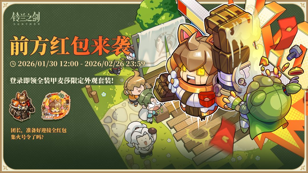 活动期间,登录即可免费领取全装甲麦莎外观「前方红包来袭」及专属头像框套装!