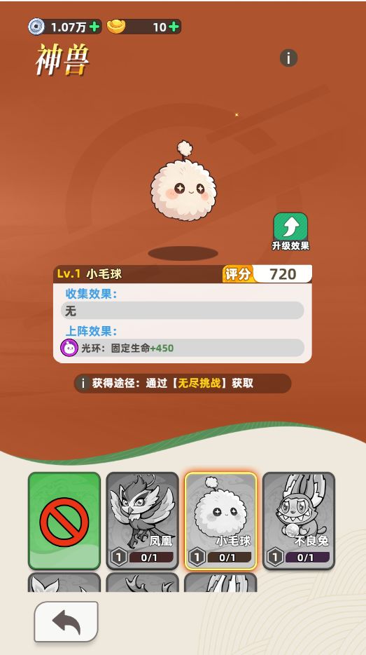 2、新增神兽:小毛球,无尽挑战商店获得