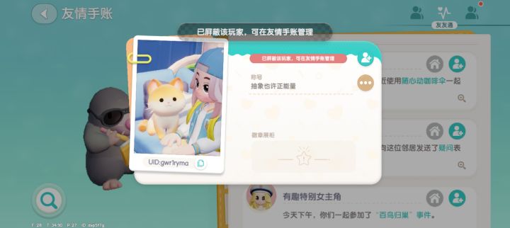 一个下午开了24局观鸟 邀请他进来好几次,后面发现他只在灯塔挂机就没有再邀请过他了,因为我们还是需要顶泡泡和一定数量的观鸟触发第二阶段,像这类直接挂机的,我们并不是说很需要,然后奇葩的事情来了,他后面发现我们不邀请他了 就趁着我们一堆人在灯塔那边拍照的时候,在结束后我们不是人,还在灯塔吗?他已经站在发起事件那儿自己发起事件了,其实他自己的金币啊,他自己发起,他自己一个人玩,我是一点问题都没有奇葩的在于他把我们所有人全部邀请进去,等我们所有人都在那里用道具在那里拍照的时候,他把我们全部人又全踢了,还给我们发了个微笑的表情…真的多大点仇啊,怎么想的?什么家庭能教育出这种东西呀?我们当时在场的都是互相不认识的,然后好几位都是随心所欲都可以作证,这个就是个天生的坏种