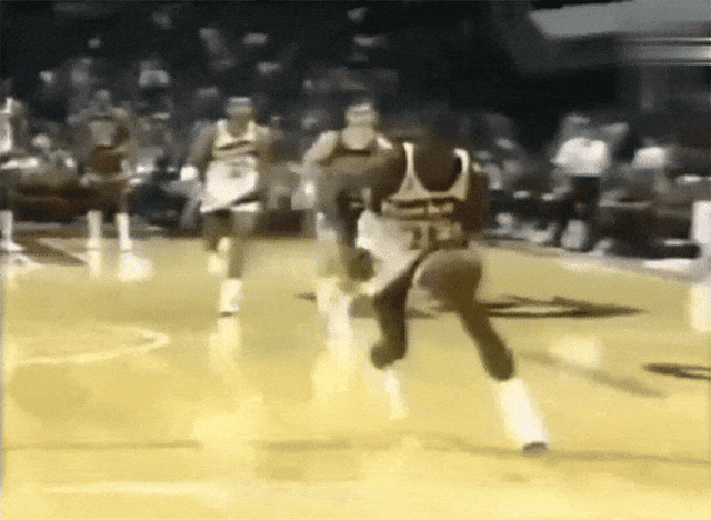 同样的跳步扣篮,则是威尔金斯独家研发的“防追帽秘技”,这种二次发力的方式对身体协调性和球感有着极高的要求,而威尔金斯能够完整的做到这一点,1988年东部半决赛第七场,威尔金斯带球单刀直入过掉凯尔特人外线两人,篮下第一步闪过麦克海尔,第二步跳步迎着酋长帕里什起扣,在空中躲过了伯德的追身封盖,将球砸进篮筐。那场比赛威尔金斯砍下47分,直到2021年杜兰特对雄鹿砍下48分才将其挤到第二位。