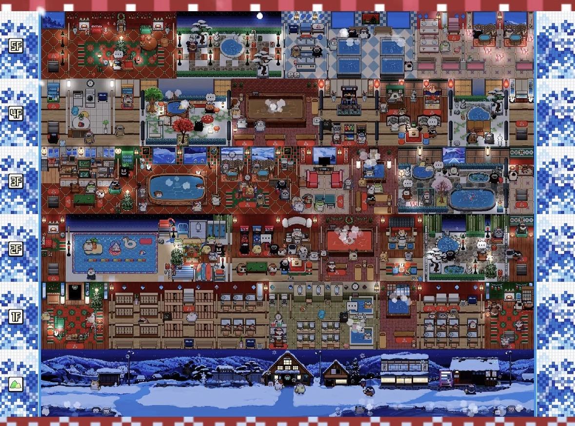 上次更新,温泉店新增了蛙蛙伙伴,和一些节日氛围装饰,温泉馆也是换上了冬季节日新装。馆长们精心装点的温泉馆,小狗都看到啦!