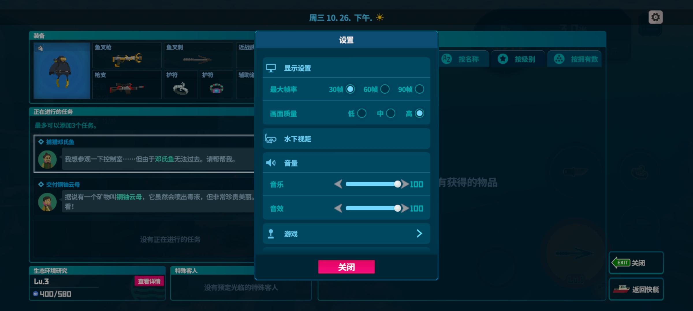 以及在水下捕鱼环节,尽管游戏提供了3档自由视距调节:但仍旧可能在小屏幕上出现:PC原版视距看不清小鱼、更适合手机的近距离视距容易被鲨鱼偷袭的问题。(因此我们也建议,大家可以在下水时,根据自己的捕鱼目标灵活调节视距)。