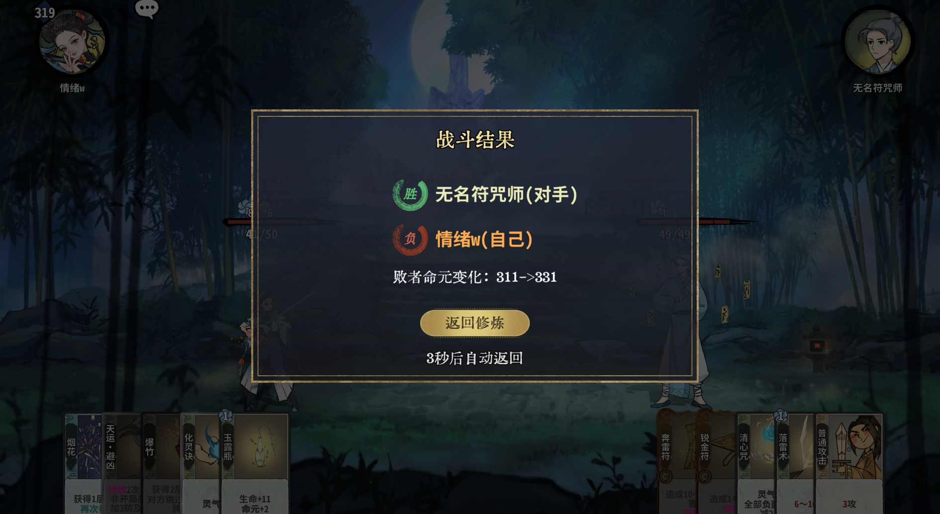 我们刷到【玉露瓶】后,通关就变得十分简单了,把格子填满能有持续或者消耗丢上去就行,如果还能刷到烟花那无敌了。输一局还倒回20点血。