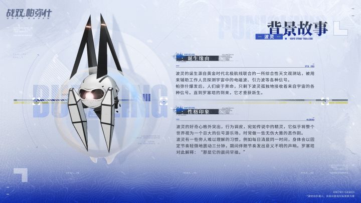 波灵的诞生源自黄金时代北极航线联合的一所综合性天文观测站,被设计出用来辅助工作人员探测宇宙中的电磁波、引力波等各种信号。帕弥什爆发后,重获新生的波灵成为罗塞塔的辅助机。