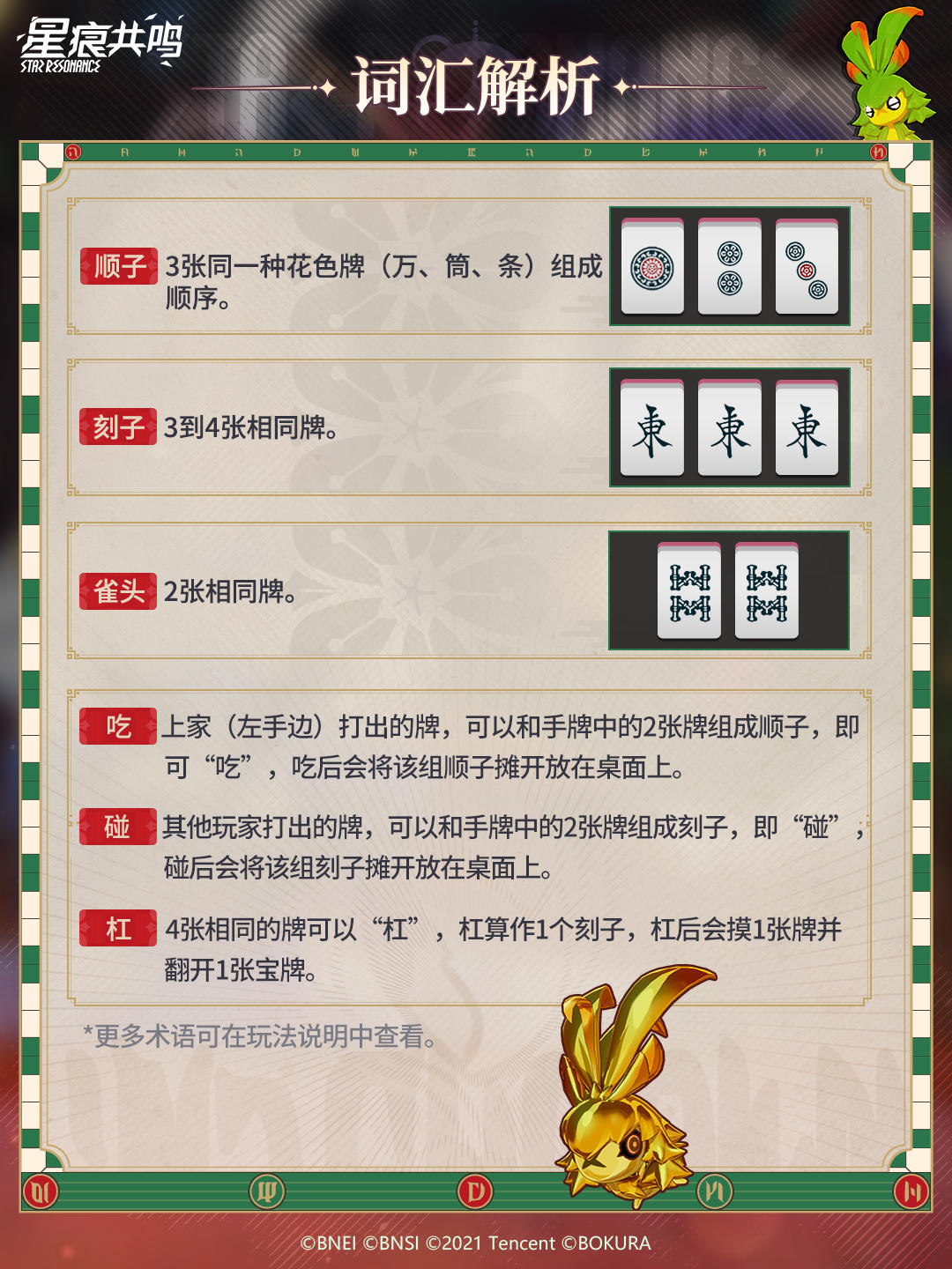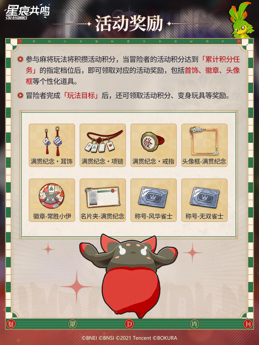 冒险者,你想要来一把令人热血沸腾的麻将吗?「雀运千结·岭上开花」立直麻将主题活动火热进行中,阿斯特里斯正在上演一场激烈的“雀神”争霸战。冒险者前往旋转舵轮亭,与NPC「席勒」对话即可参与匹配。完成麻将对局,获取活动积分,还可领取首饰、徽章、头像框等个性化道具奖励。