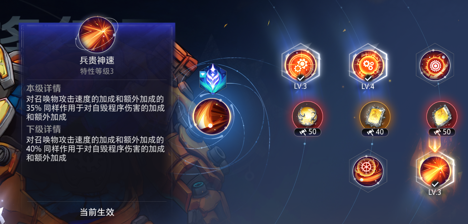 召唤物的攻击速度会影响机器人和蜘蛛的自爆频率 三档50 140 225