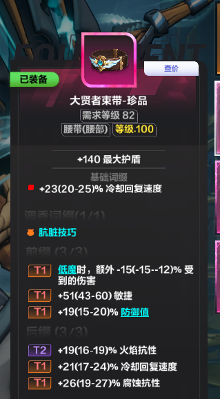 自制腰带 可以拿很多冷却/抗性 调香肮脏/核心生存词条