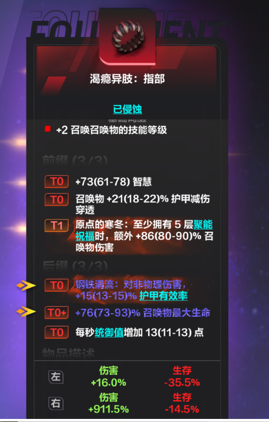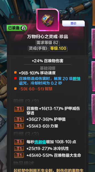 固定词缀召唤物暴击爆伤/护甲/冷却速度/免疫减速 如果主玩魅影则可以选择施法速度