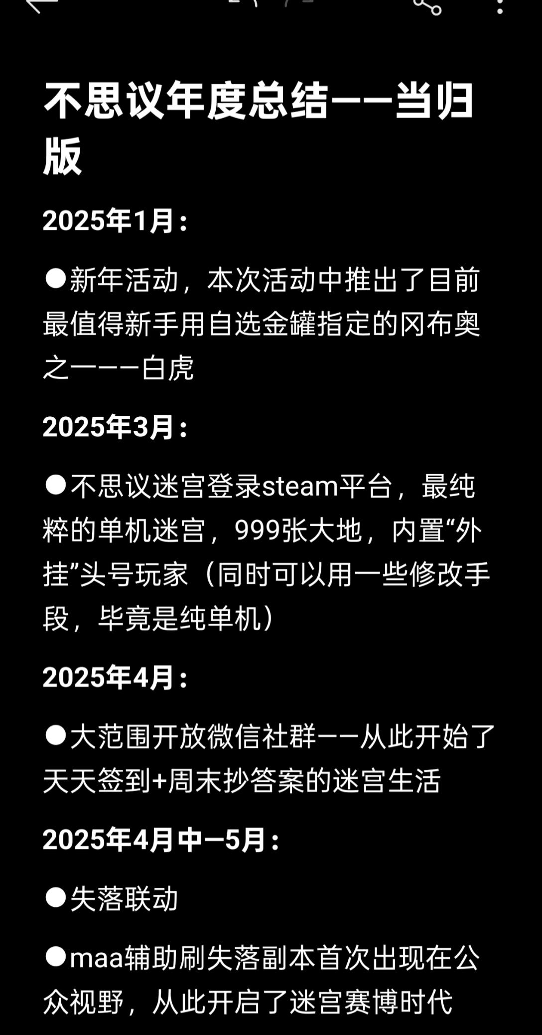 2025不思议迷宫年度总结及其他叨叨