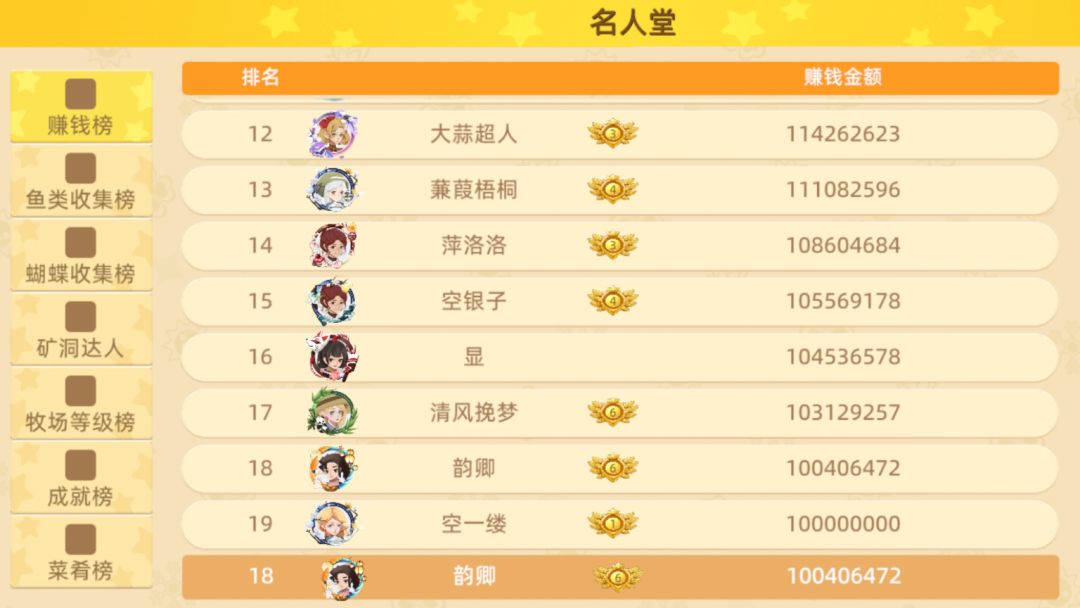 【恭喜】韵卿!成为达成亿万富翁成就的第十九位玩家!
