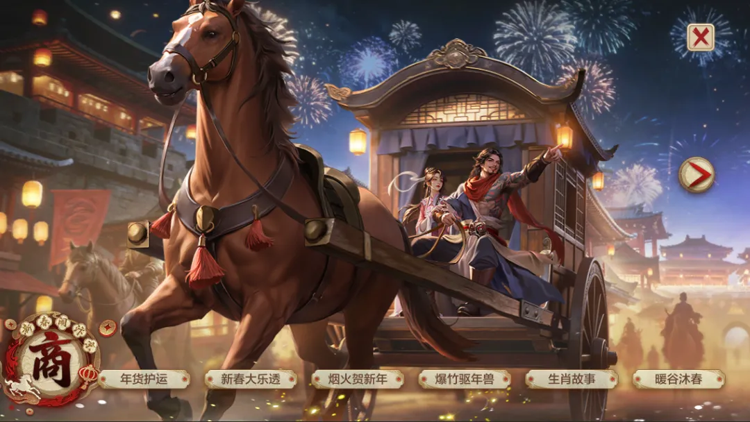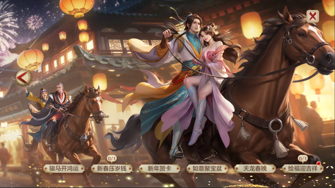 与此同时,轻松版主题商店也将焕新为「新春闹汴京」主题商店,少侠们可使用【汴京彩灯】前往主题商店兑换心仪好物:宝石提升符、妖虎元神、小狐仙贺岁(永久)、摇摇马、残片·灵驹雪雕、残片·龙马精神、强化精华宝箱、高级宝石转换券、龙元珀等精美好物。