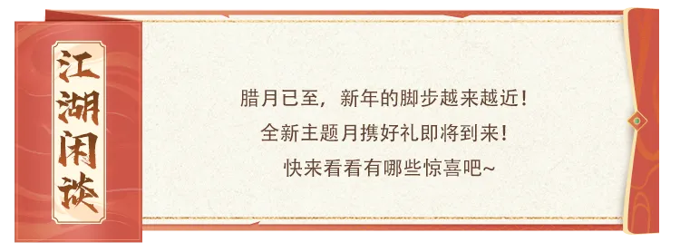 腊月已至,年味儿越来越浓啦!都说“过了腊八就是年”,虽然春节还没正式到来,但装满福利与好运的二月活动即将上线——少侠们就等着被福利、好运和惊喜团团包围吧!