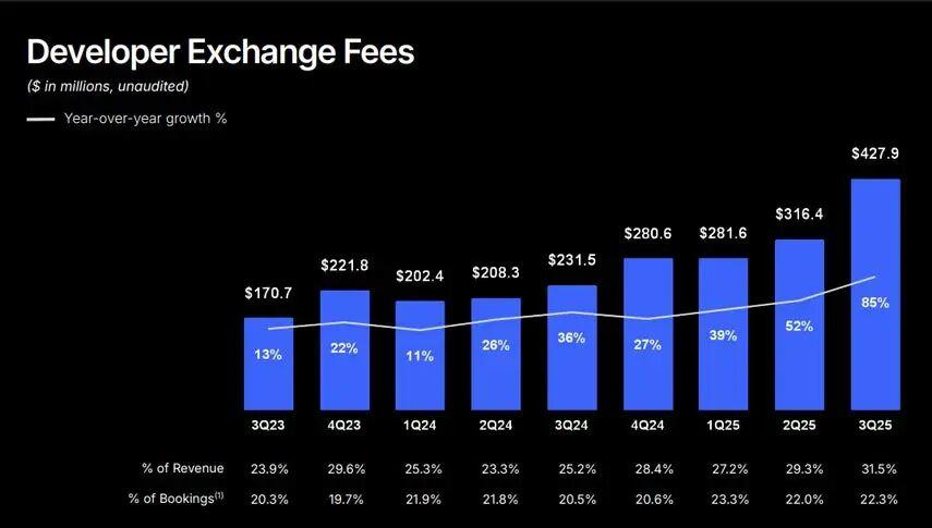 按照CEO David Baszucki的描述,Roblox的野心是:“让全球游戏内容收入的10%通过Roblox生态系统流动。” 这意味着Roblox的收入规模需要变成现在的至少3倍。(2025年Q3的估算数值是3.2%,比2024年同期增长39%)