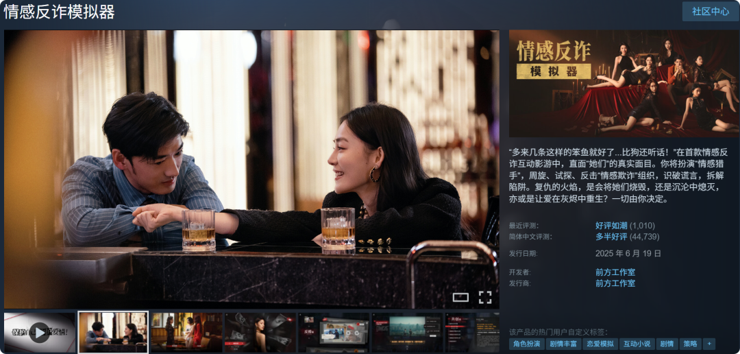 《情感反诈模拟器》(原名《捞女游戏》):主打情感反诈主题的互动影游,因题材敏感性在社交平台遭遇多轮封禁风波。北美标准售价6.99美元,总计销量已破100万份。