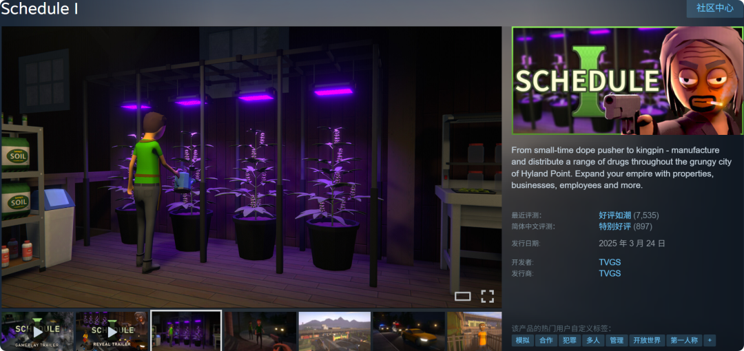 《Schedule I》:被玩家戏称为“硬核绝命毒师模拟器”。北美标准售价是19.99美元,总计销量已近1000万份。