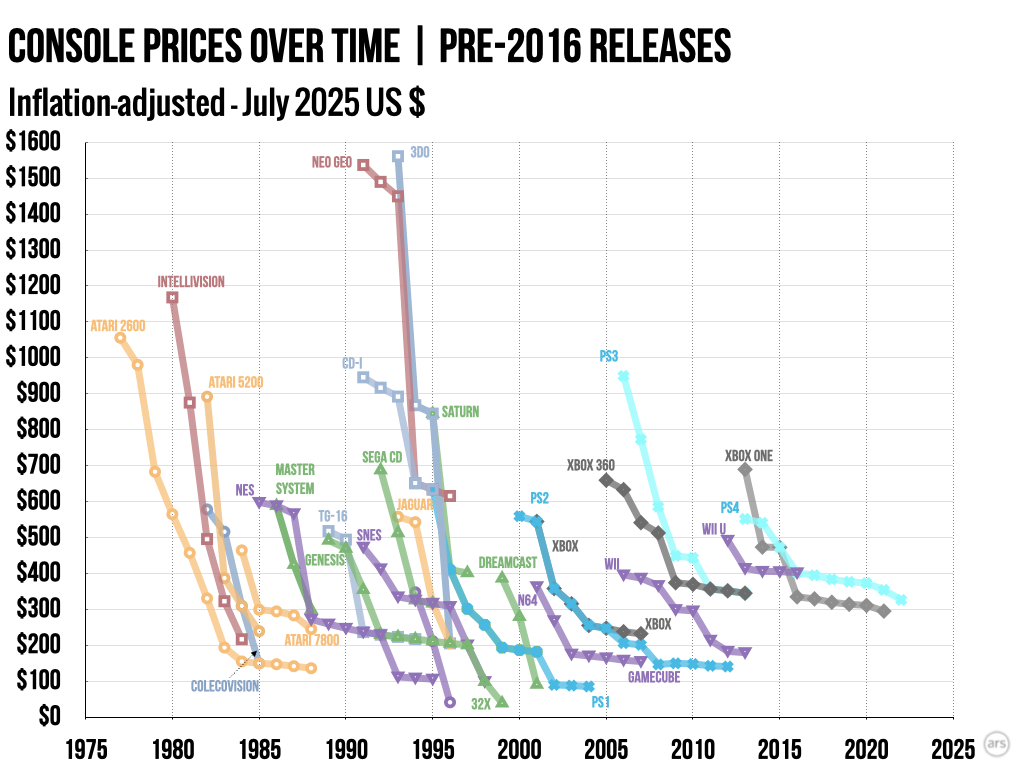 过去三十年,“首发亏本卖硬件,通过摩尔定律降低生产成本,并在中期降价扩大用户基数,最终靠软件销售额回血”是主机行业的铁律。