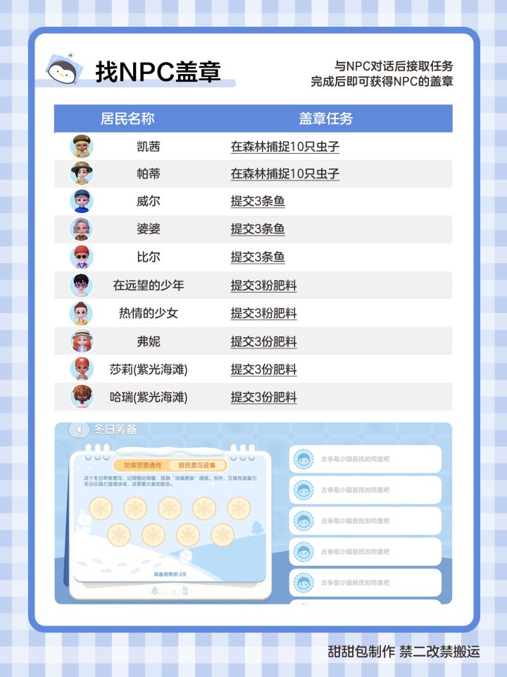 ⭐一共需要9个盖章 NPC任务相同的几个可以全部接完一起做!