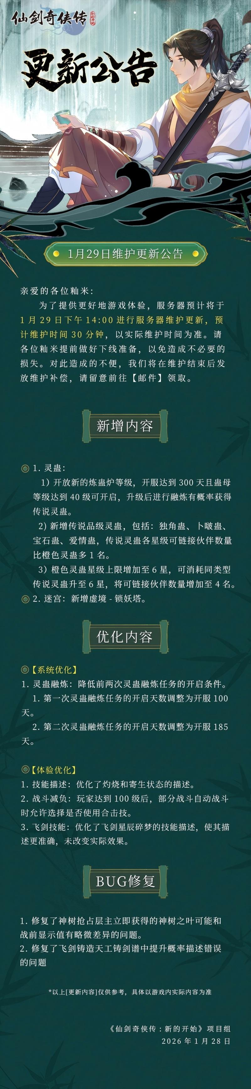 1月29日维护更新公告