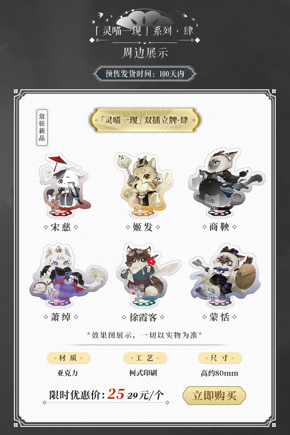 「灵喵一现」系列亚克力双插立牌、PU马口铁徽章