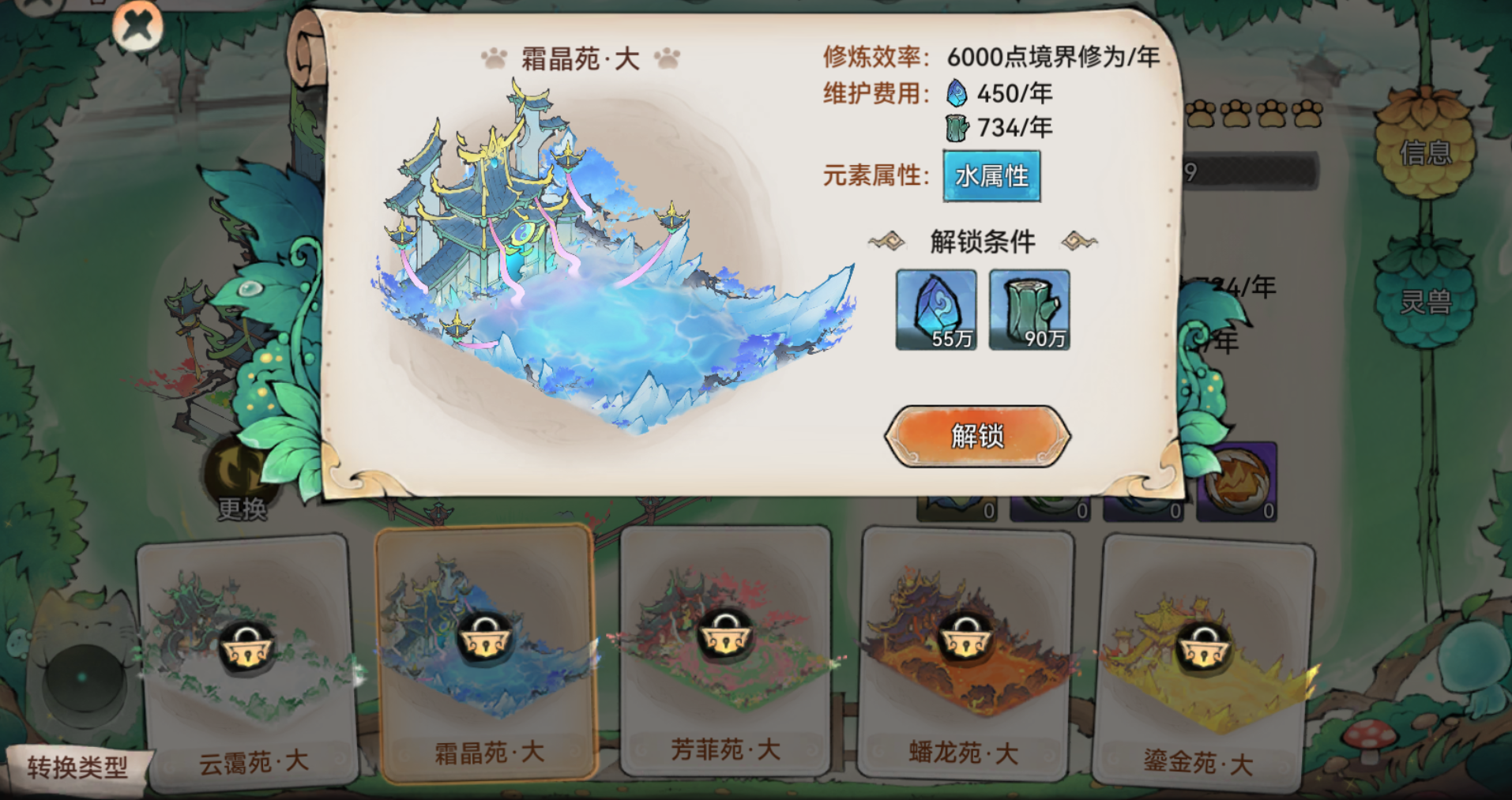 - “兽栏”拥有五行属性,灵兽处于自身喜爱的属性环境中,可以额外提升心情值增长效率;