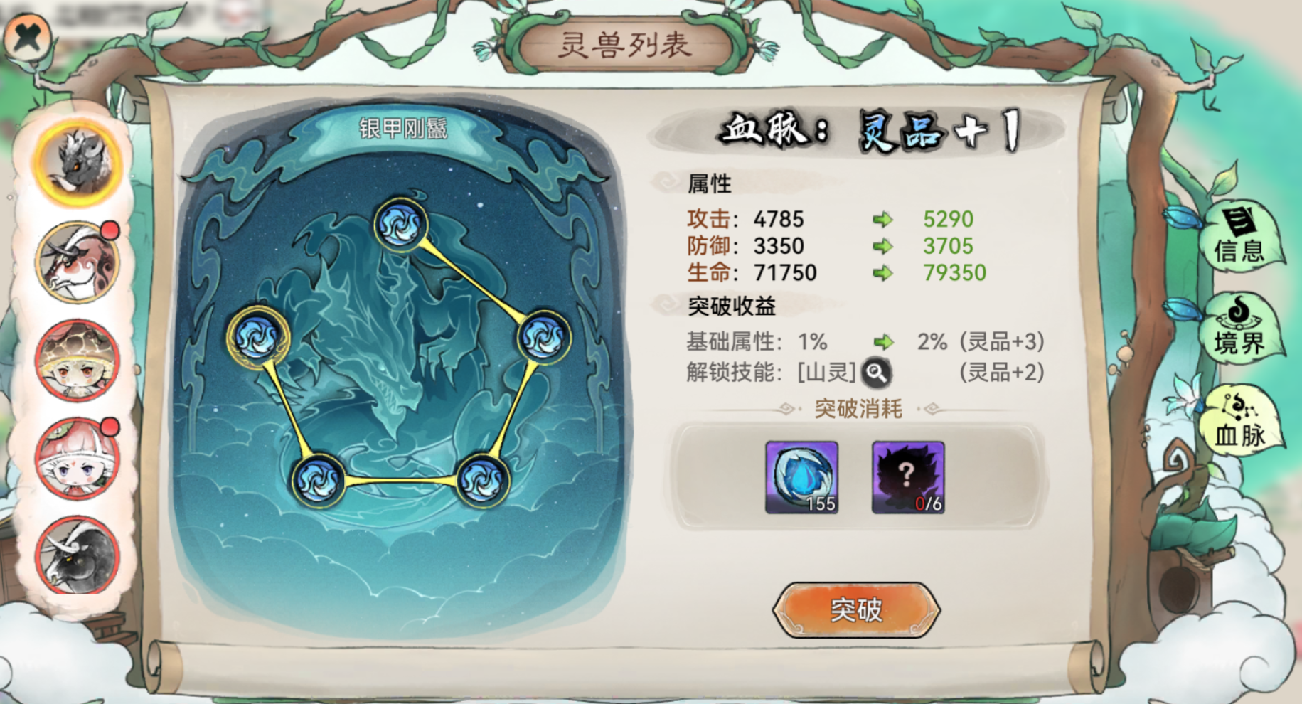 血脉提升除了可以增加灵兽伙伴的基础属性外,在达到到特定等级时还可解锁其被动技能,进一步强化灵兽的作战能力。