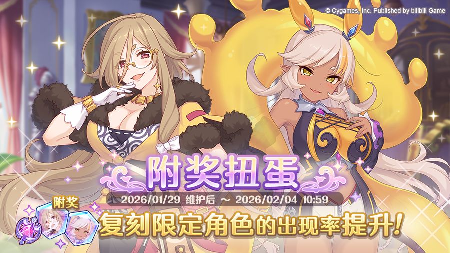 1月29日维护后,期间限定角色★3「克蕾琪塔」、★3「涅亚」将在附奖扭蛋和白金扭蛋中限时登场!