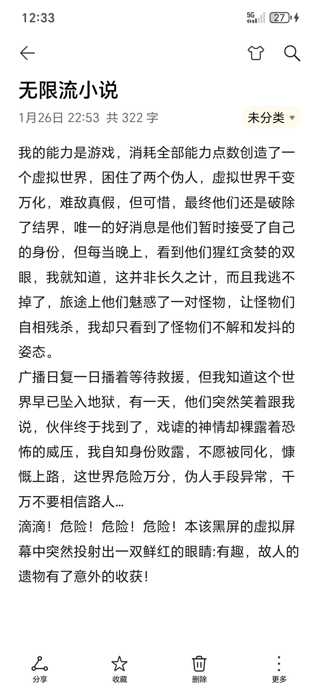 昨天晚上趁早洗了个澡,因为小时候有怕鬼的经历,后遗症很大,现在也有闭上双眼,周围就有妖魔鬼怪在身边的感觉,当水流从头发快速流动的时候,突然灵感迸发,写了下面的小作文