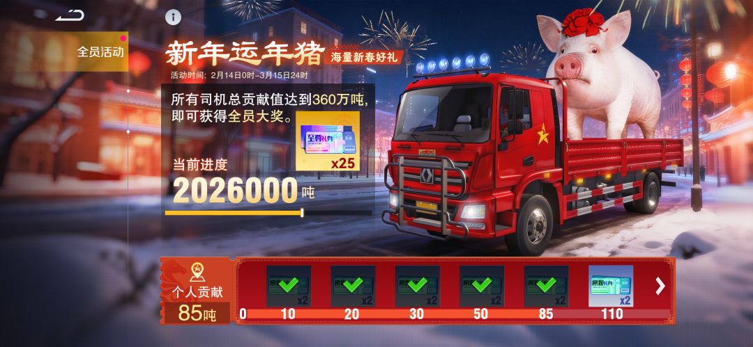 各位老司机请注意,“新春送年猪”运输任务即将启程。这一次,凭实力闯关,靠协作达成全员目标,用车轮承载年味与荣光!