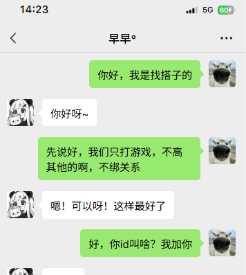结果现在越打越不对劲,主要就从那天我们俩连麦打游戏完之后,没挂电话,开始聊天之后吧,就开始感觉有点不一样了,后面直接开始习惯跟她连麦了,而且她还愿意陪我玩她没玩过的游戏,特地开了个号跟我一起玩梦想,还跟我在里面进了一个帮派