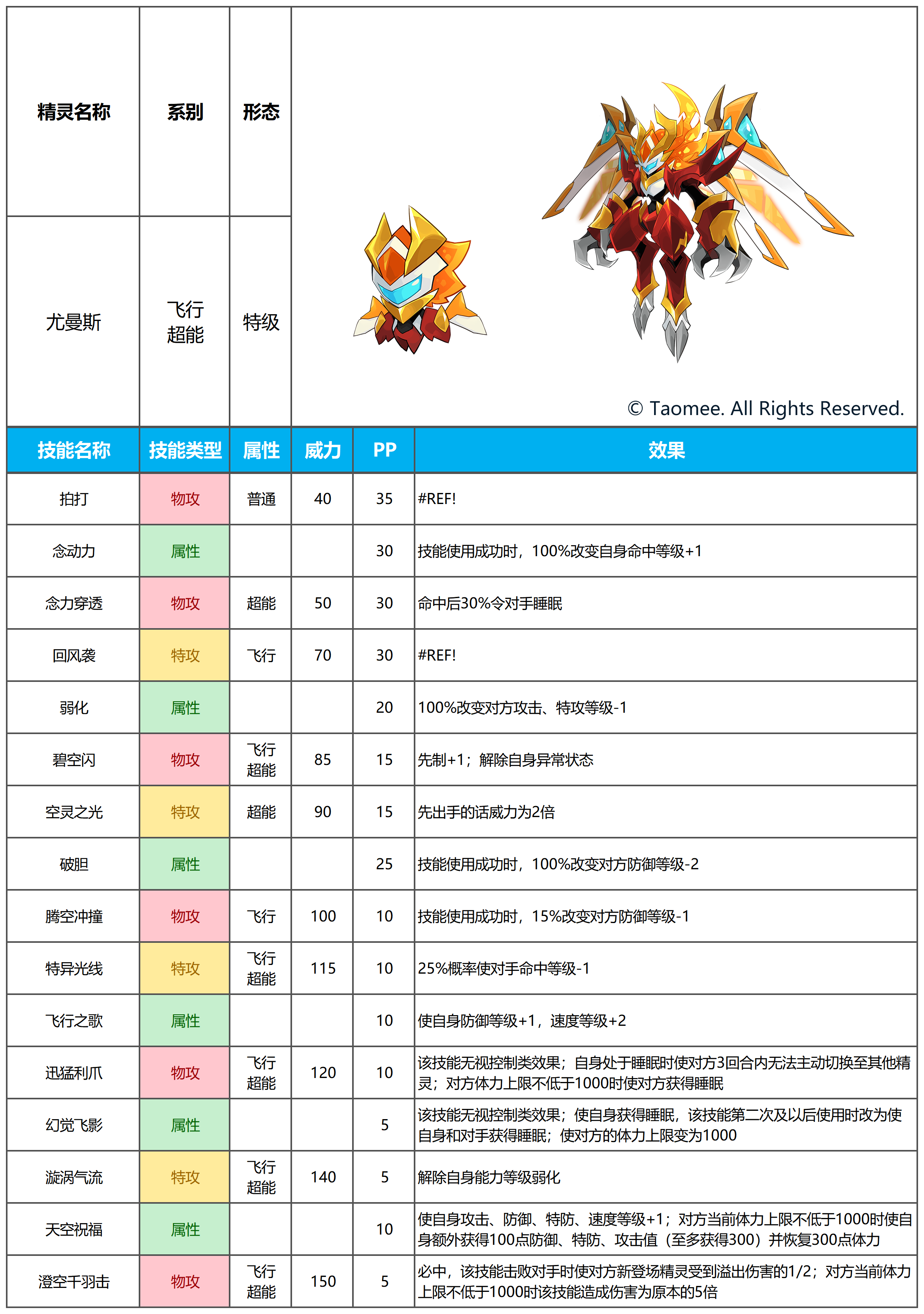 注:精灵的实际内容请以更新后游戏内为准!