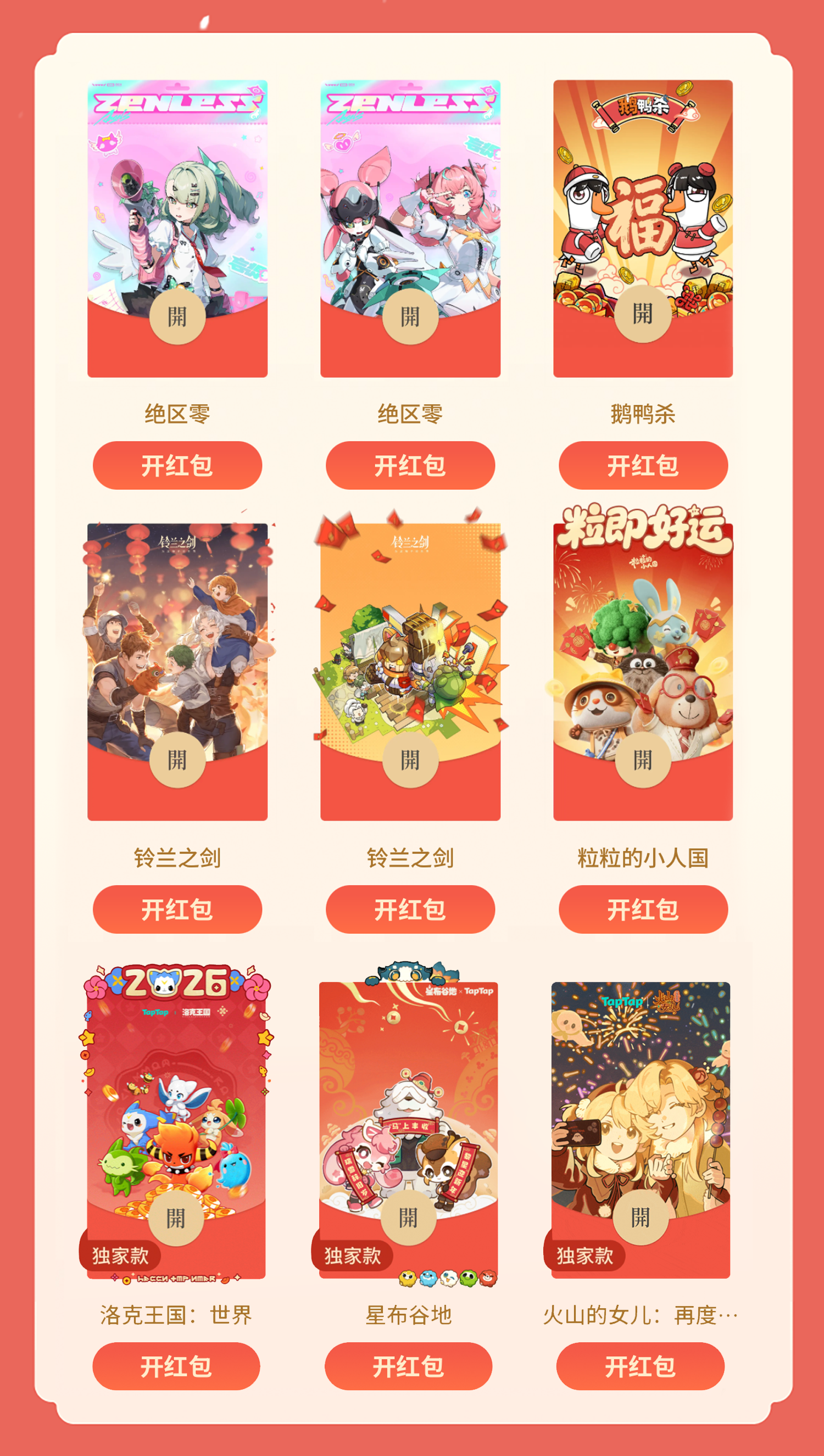一共有90多款、总量100多万份游戏红包封面正在派送中~开红包,100%中头像挂件、游戏礼包等新年福利噢!