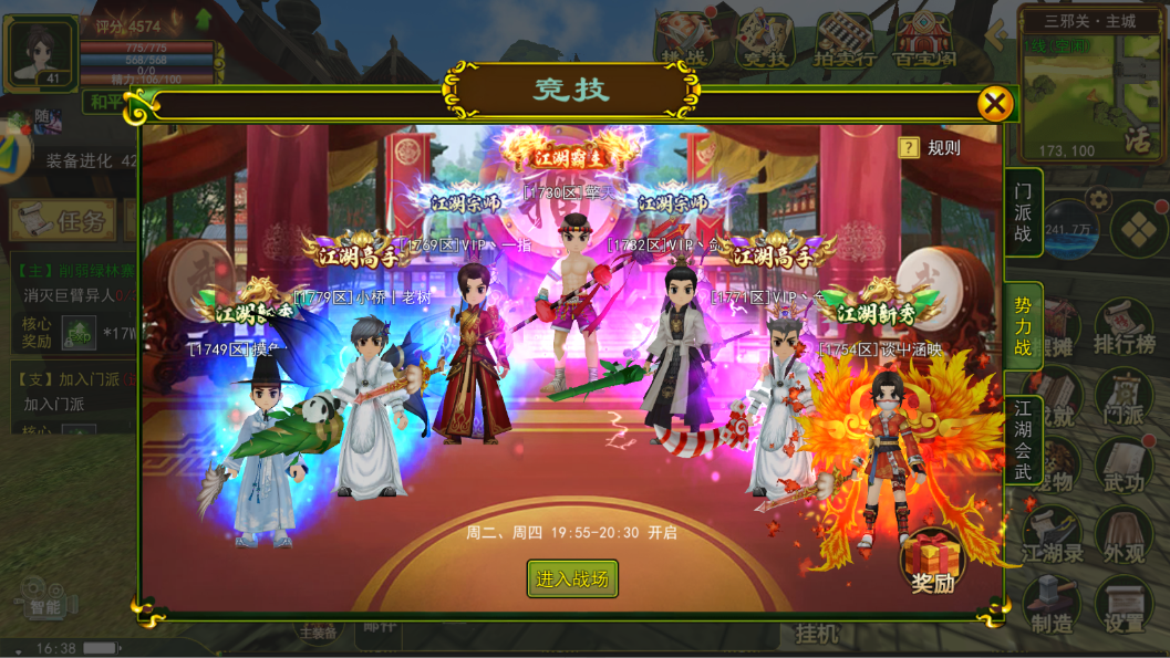 上一期跨服势力正邪榜前50的可参与;