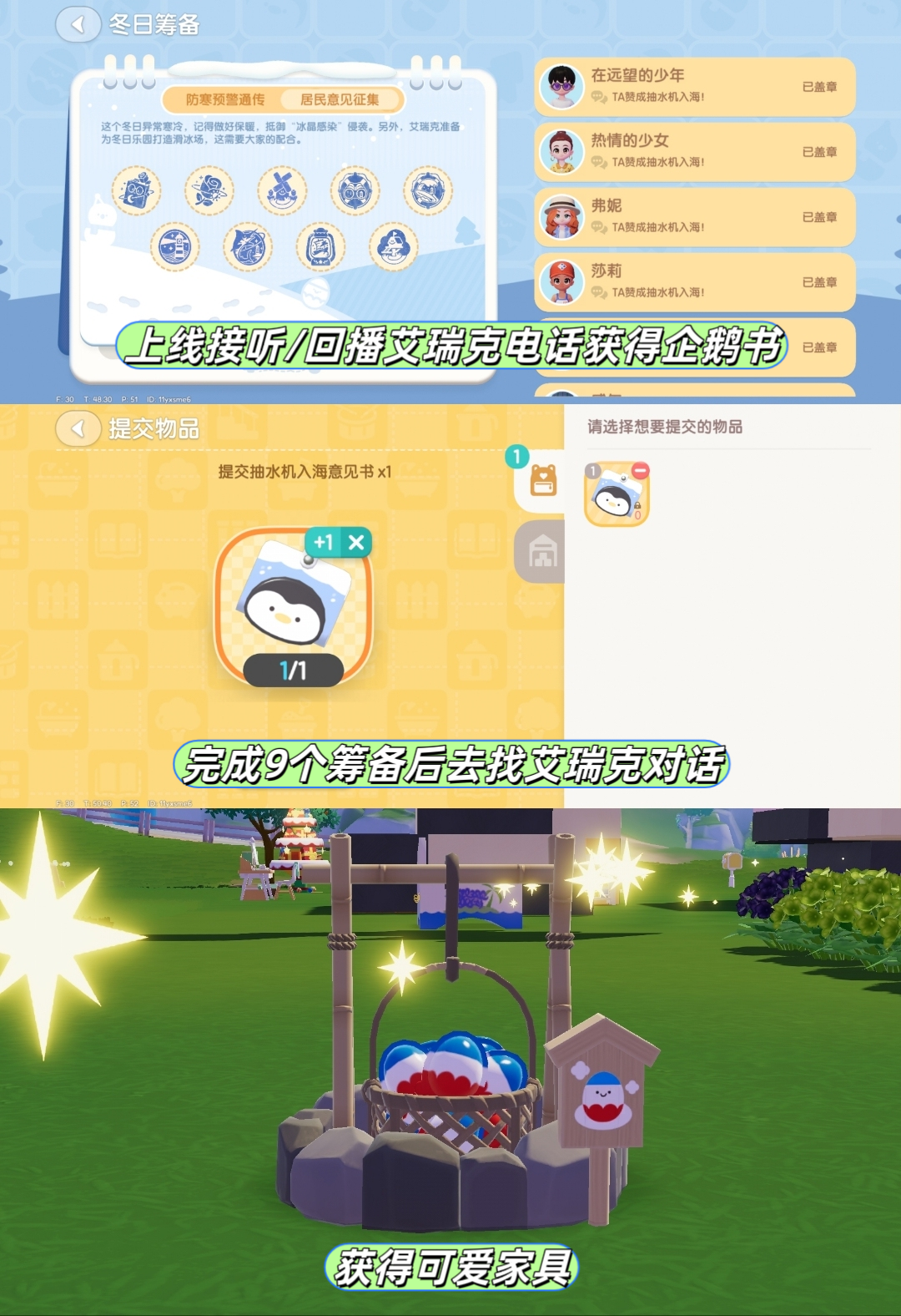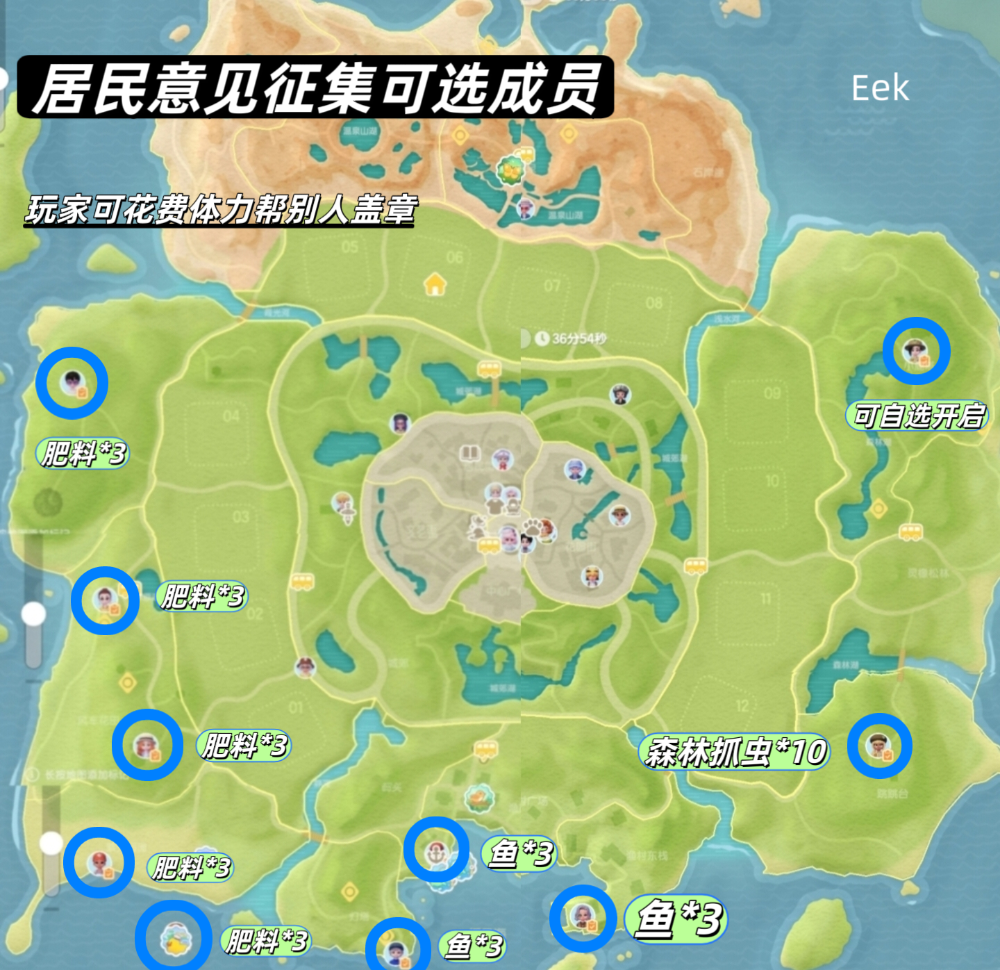 10个居民意见征集点位图,筹备只需完成其中9个(页3),或者玩家可花费体力互相帮忙盖章。