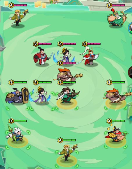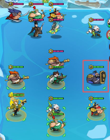 打法师的时候可以站在第二排,这样5攻击距离的射手不用移动就可以打到敌方最后排。